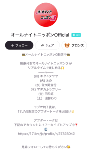 - オールナイトニッポンOfficialアカウントを検索してフォロー