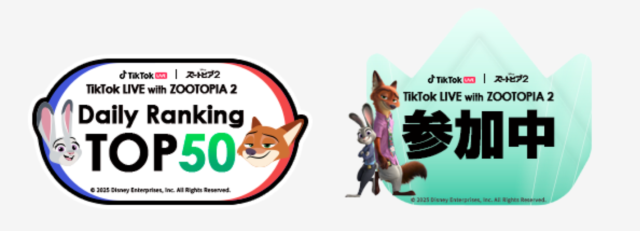 ショートムービープラットフォーム「TikTok(ティックトック)」は、TikTok LIVEにて、映画『ズートピア2』(2025年12月5日公開)とのオリジナルイベント「TikTok LIVE with ZOOTOPIA 2」を11月10日(月)より開催します。
